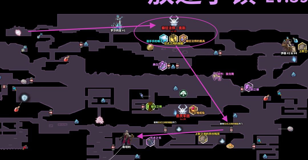 注意一下:NPC罗莎莉亚这里有一个门,第一次到这里的时候,只能按红箭头方向与NPC对话开门,逆着红箭头是无法通行的!!!
