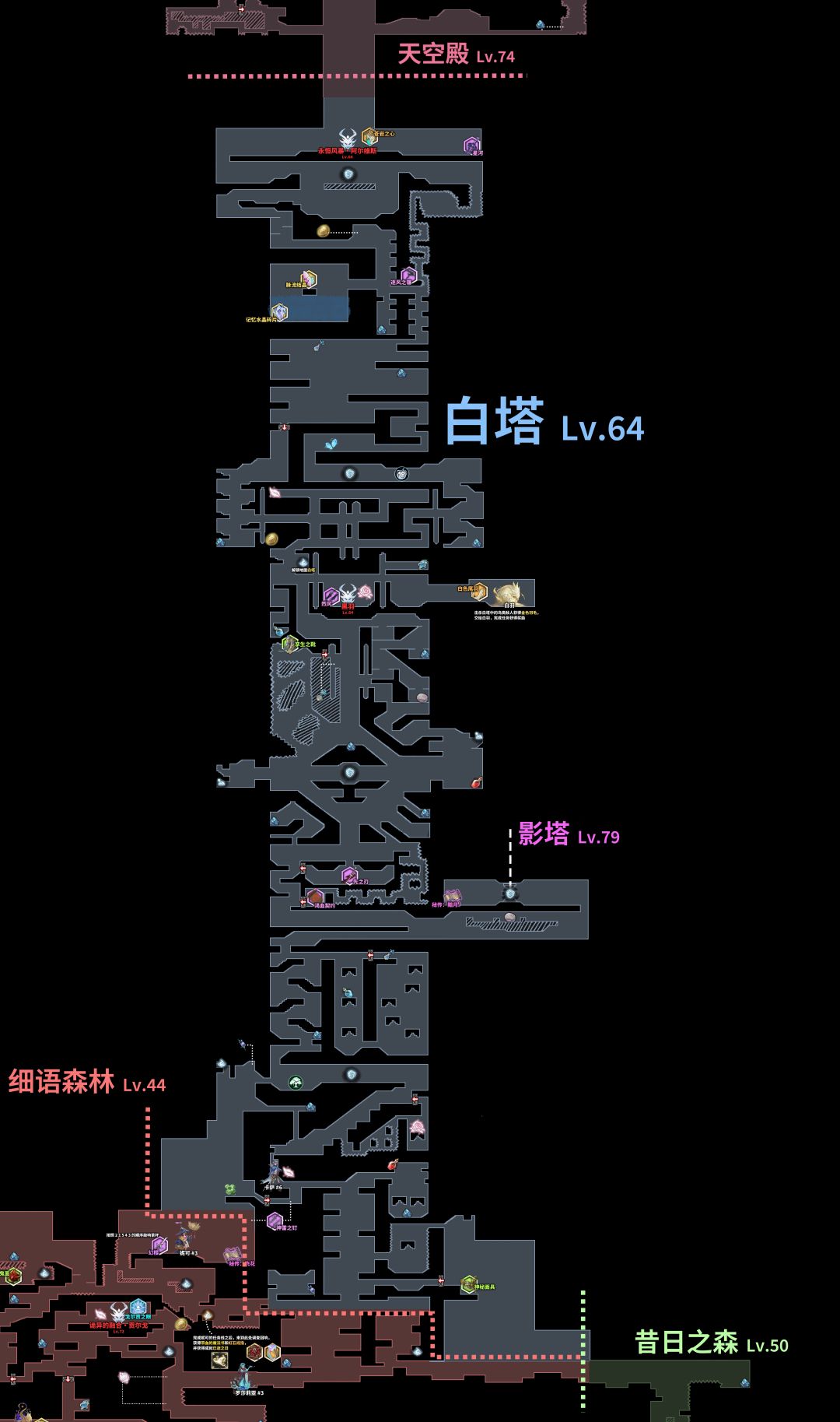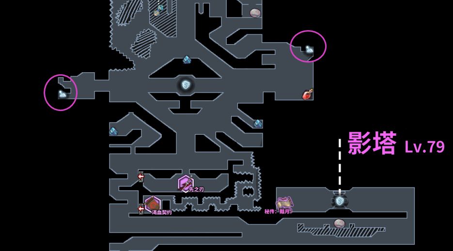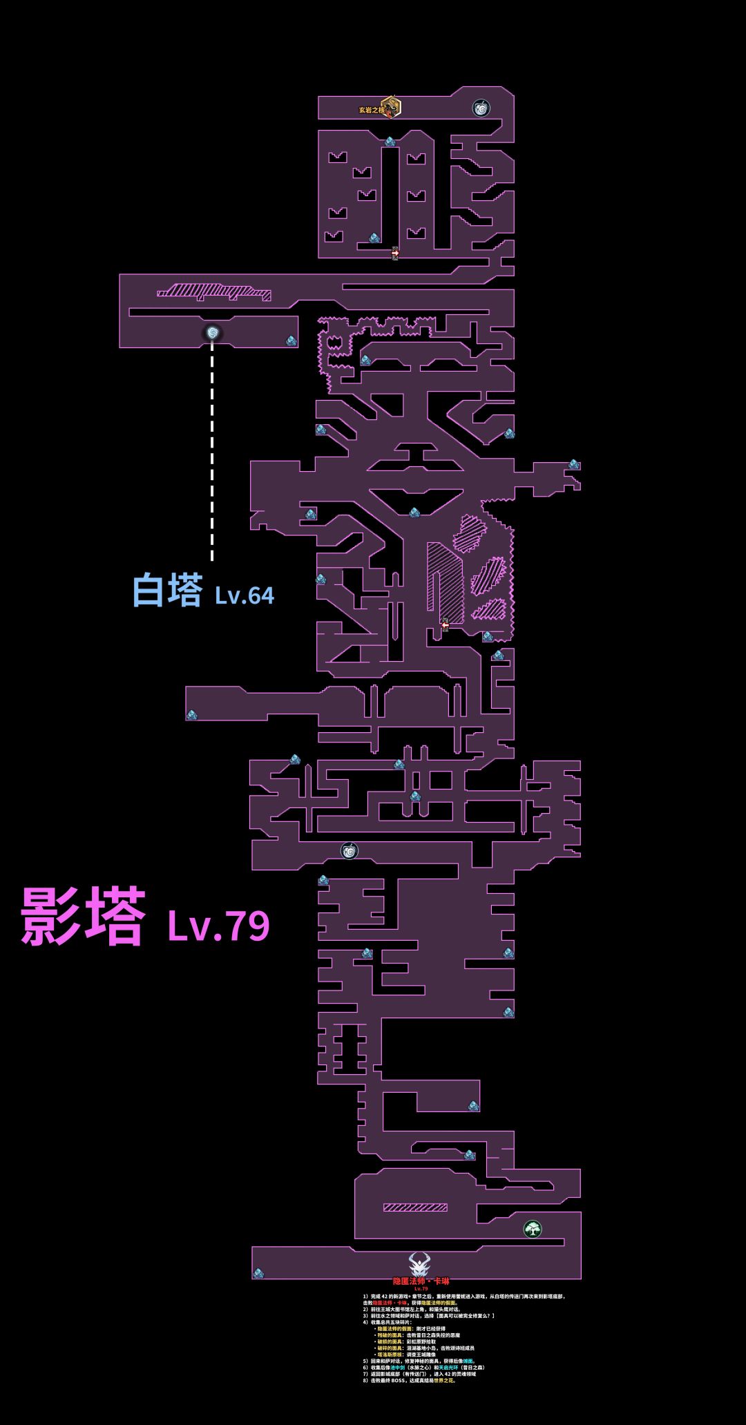 “42线”,一共十段,第十段,会进入一个新的场景,“影塔”,啊,对,就是前面讲白塔的时候提到的“影塔”,“42线”通关之后可以从白塔进入"影塔",“影塔”和“泪湖”一样,属于特殊地图,无法调取地图界面