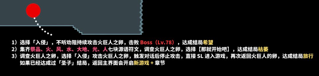 这几个结局弄完之后,还记得刚刚没让进的火之领域右下角嘛,现在可以进去了,按照提示完成对应结局: