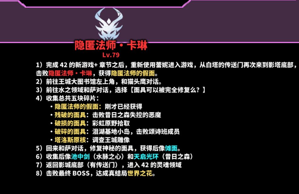 还是相当于要打两次,第一次进来打了拿到,“隐匿法师的假面”,如图,一通流程下来,合成“傩面”,至此,“傩面”、“池中剑”、“天启光环”三位一体全收集,然后再打一次BOSS