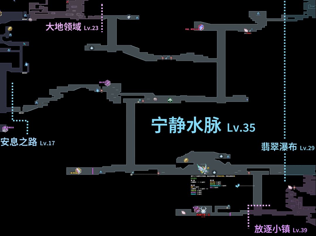 宁静水脉上面还有一个重要道具“幸福,神性的左瞳”,别忘了哟,探索完宁静水脉之后,继续回到翡翠瀑布,往下,探索放逐小镇,
