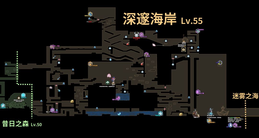 很简单的地图,没什么好说的,捞完回昔日之森,探索昔日之森右边半截的地图,在从昔日之森右边进入深邃海岸,记得从深邃海岸回昔日之森,捞捞那只老乌龟