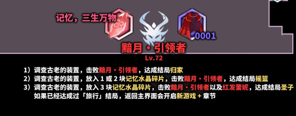 游戏有个BUG,如图,全成就完成之后TAPTAP上显示未完成,不要慌,退出游戏,重新登录游戏,然后在存档点休息一下,就解锁了,实在不行就重新打一下真结局“世界之花”