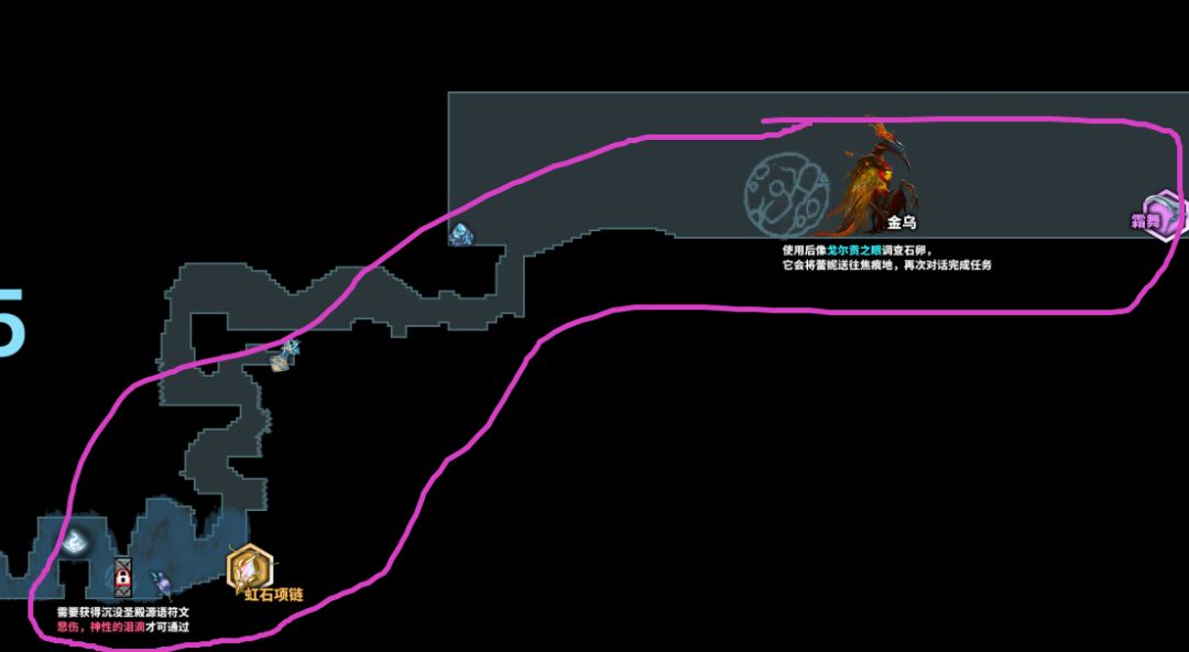 为啥要分2部分来讲呢,沉没圣殿是大结局的图之一,目前捞完“悲伤,神性的泪滴”,就可以溜了,大结局的时候再来,