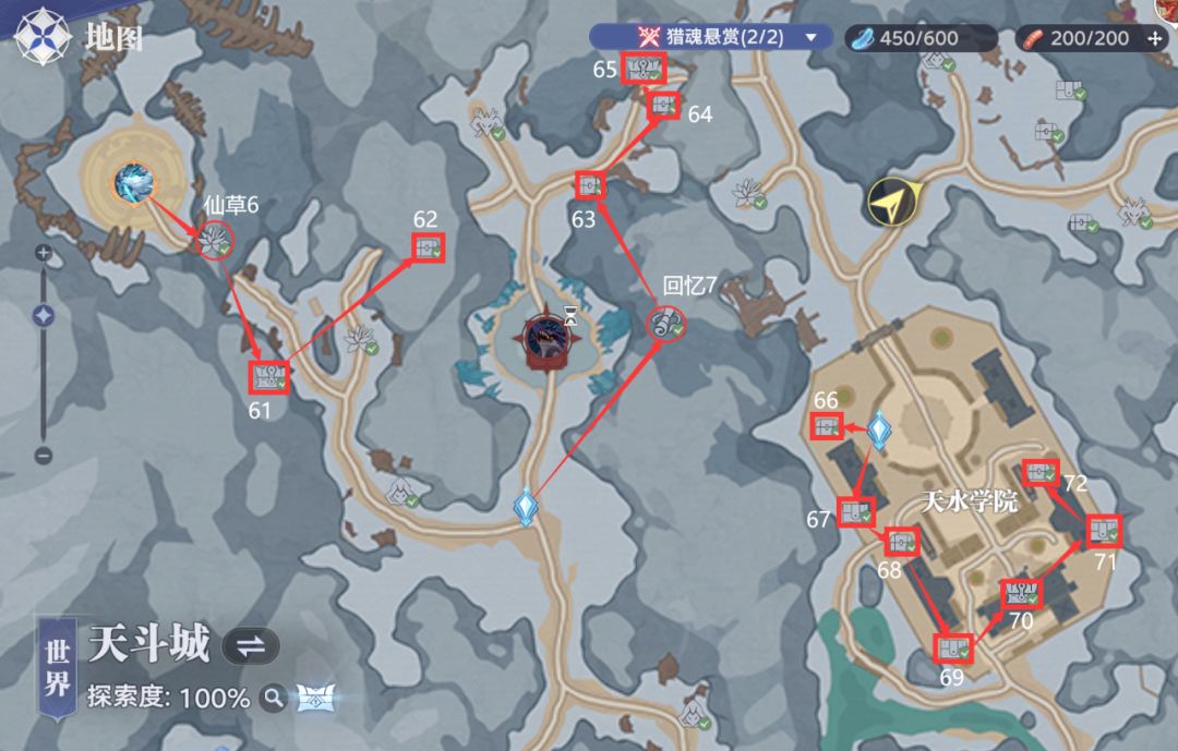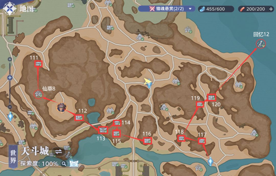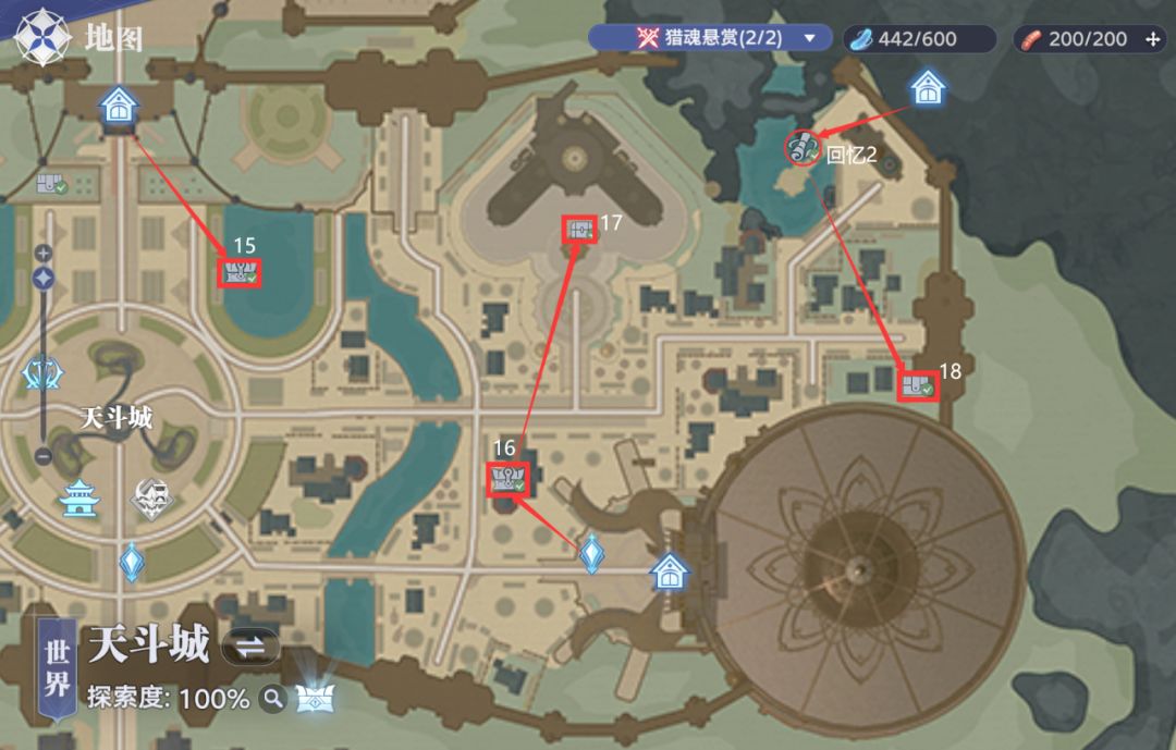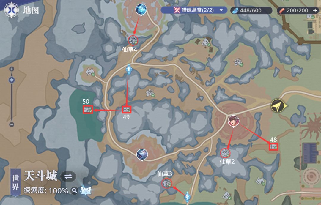 斗罗大陆猎魂世界天斗城地图探索宝箱回忆仙草攻略图