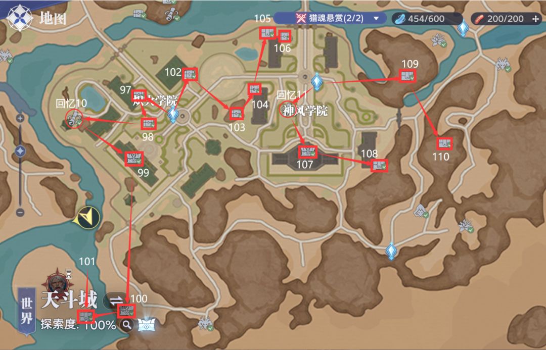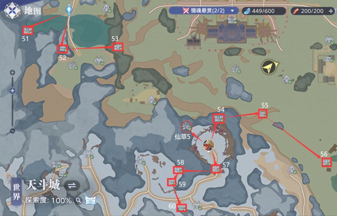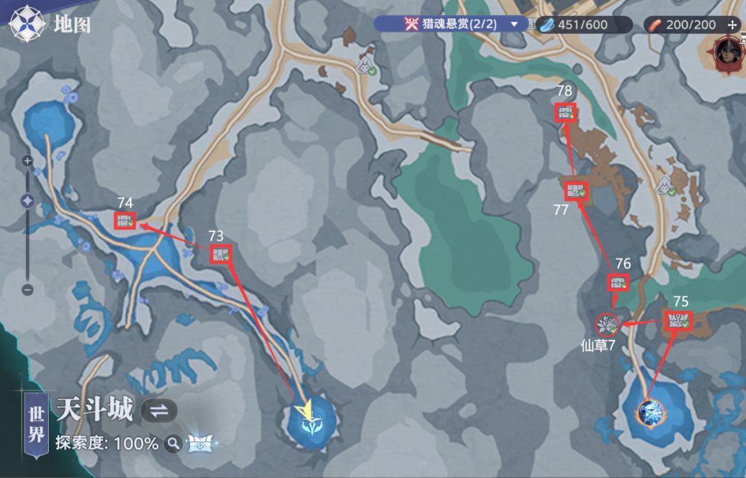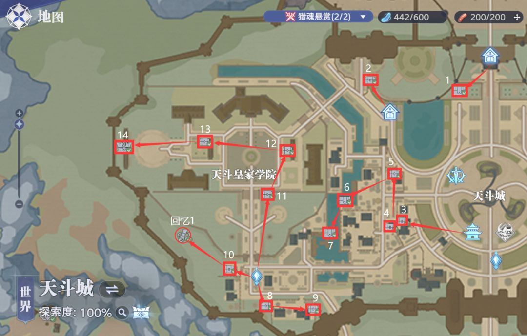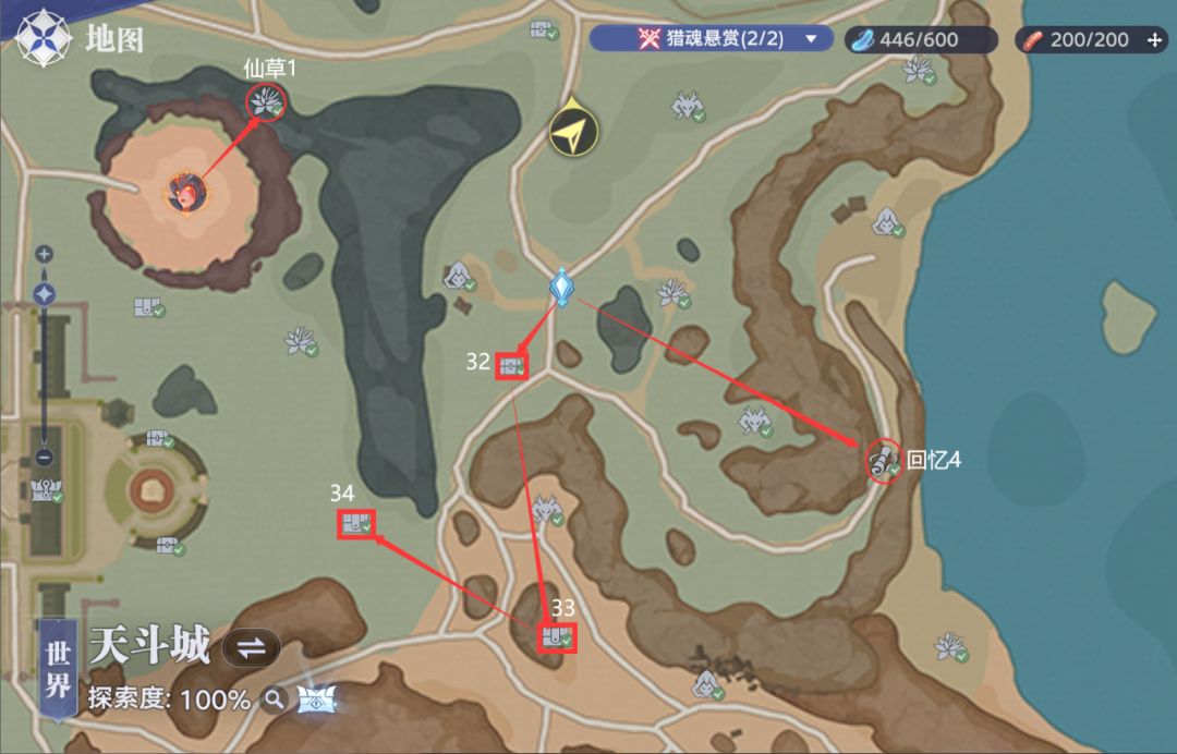 斗罗大陆猎魂世界天斗城地图探索宝箱回忆仙草攻略图