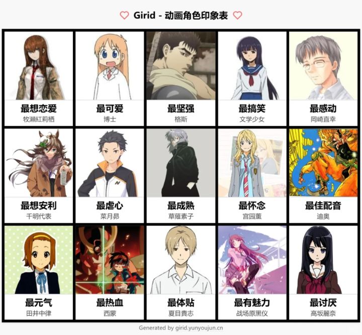 一些动画角色印象