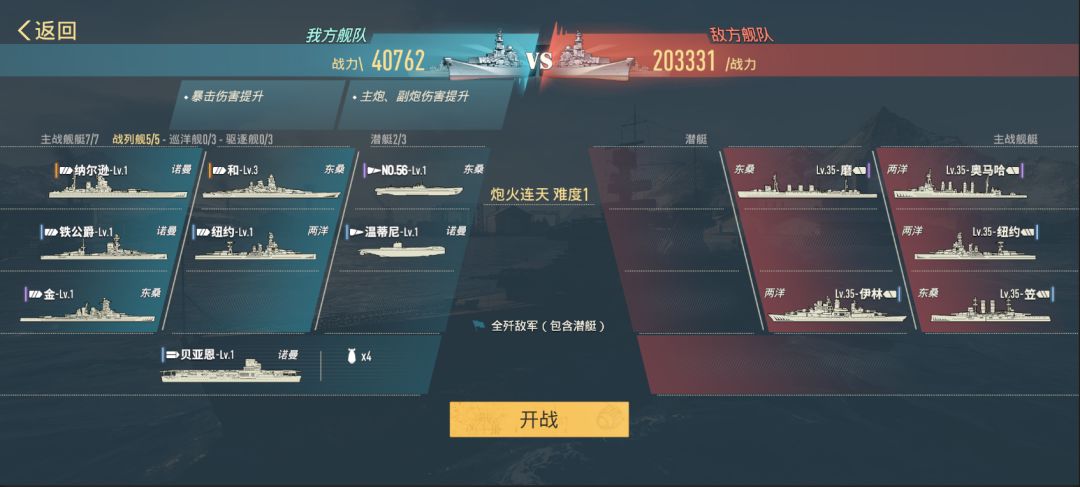 1. 炮火连天 : 对抗巡洋舰队。效果: 提升我方主副炮伤害与暴击伤害。目标: 强化战列舰火力,压制巡洋舰。