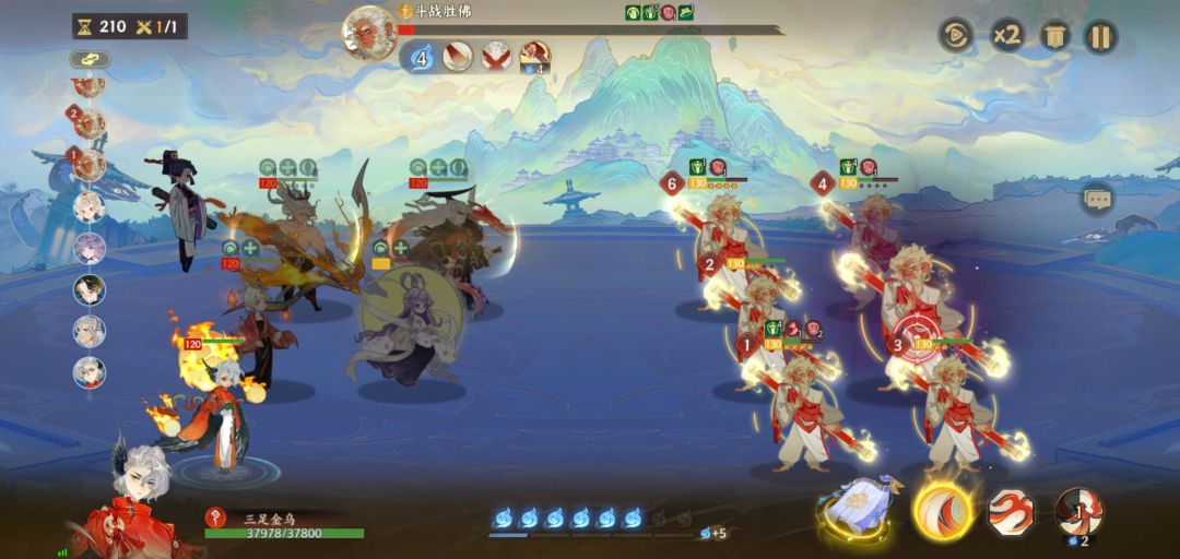 最后一层也是很简单的,可能对你角色的坦度稍微有点要求吧,先保证你的后排输出位别挂,然后前排的嫦娥也别挂就行,然后等对面猴子召唤分身,用群攻角色优先打分身就行,每个分身打掉本体就会掉5%的血,还是慢慢磨死就行了