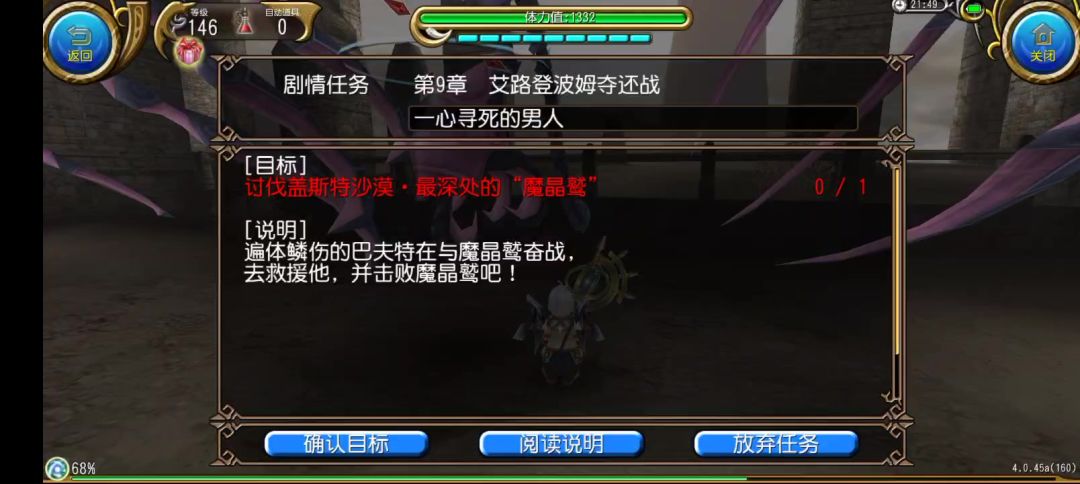 魔晶鹫,俗称魔晶鸡,有点难,但是有大姐头的百级急救和超绝抗伤,能过。魔晶鸡的任何技能都要注意躲避,实在躲不了就等大姐头扶,大姐头也倒下了就撤退重来。魔晶鸡的惯性变动是5%,所以可以多丢丢小刀再用魔法枪。