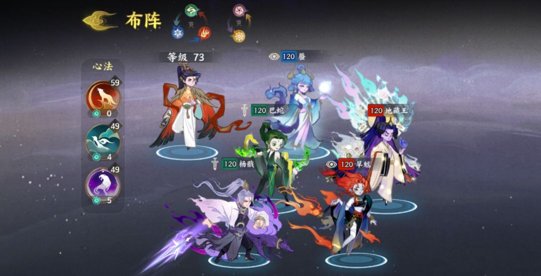 辅助:旱魃+任意控制(控制优选蜃和金蝉子带高星妙法灯、其次判官)