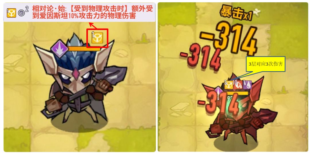 攻击后给予怪物1层『相对论·始』debuff,受到物理攻击后额外造成对应层数的攻击力伤害