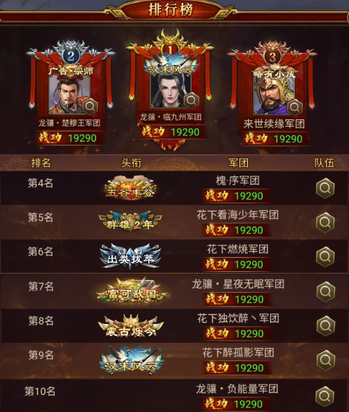 其中,龙骧·临九州 军团以 19290 的战功拿到本期益州之战TOP1,荣耀加冕,实至名归!