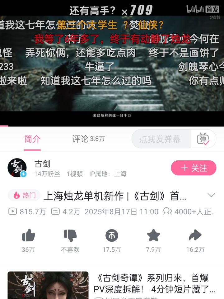 国产单机《古剑》预告片爆火!
