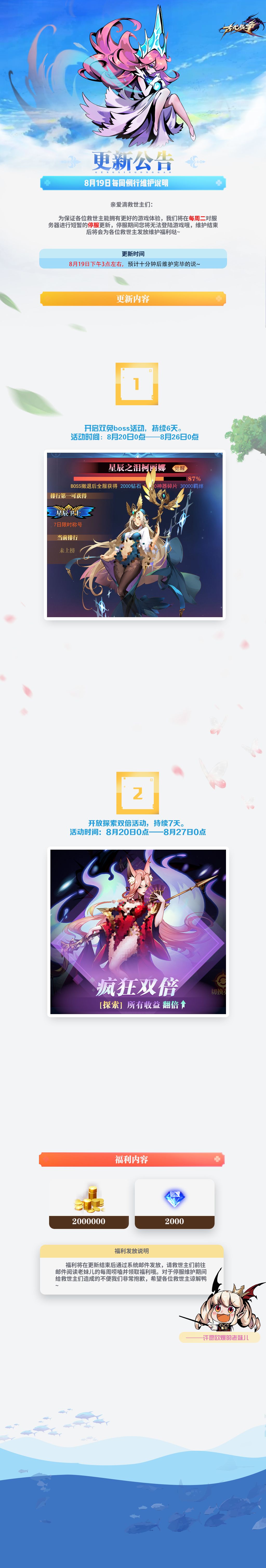 【更新公告】8月19日每周例行维护说明๑>ᴗO๑