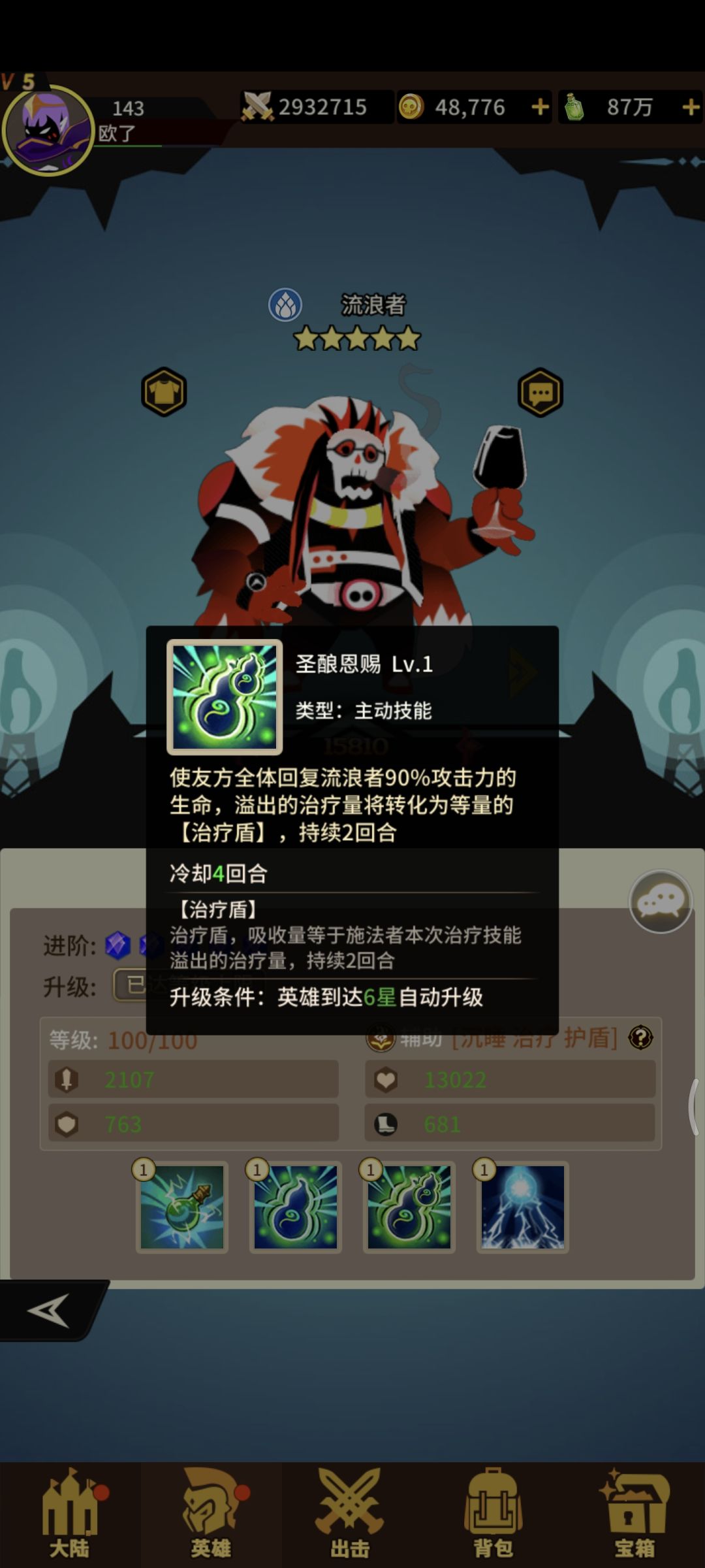二技能+生命+攻击满级+治疗!三技能恢复全体生命值!溢出部分生成治疗盾!满级+持续恢复状态两回合!四技能回合开始为生命最低队友+生命+抗暴!牛不牛逼