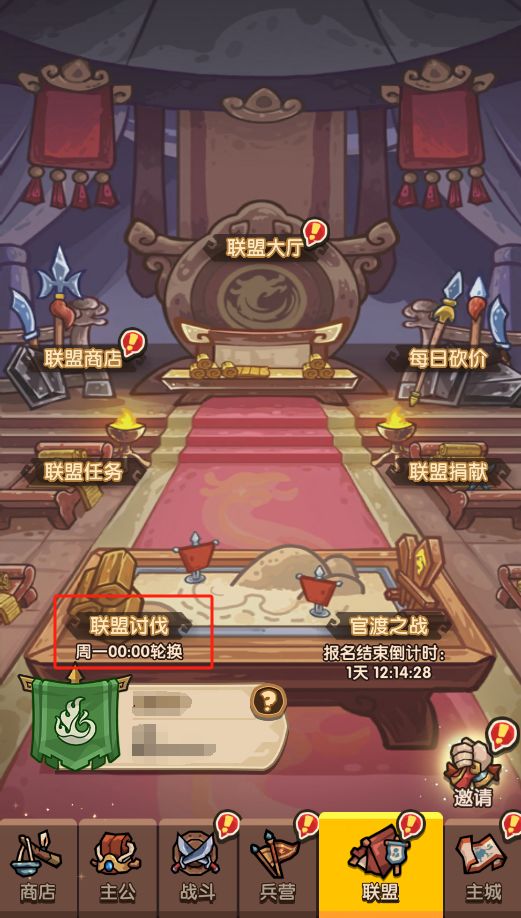 当主公所在服务器进入跨服(开服35天后)开启联盟讨伐轮换。通过联盟内的该入口可以进入到郡国会战玩法当中。