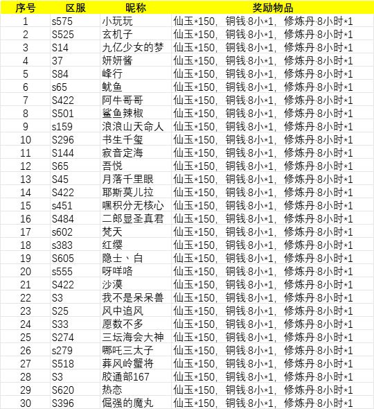 活动奖励:仙玉*150,铜钱·8小*1,修炼丹·8小时*1