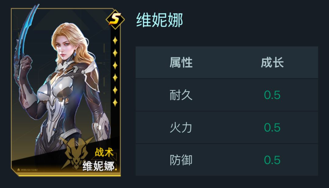 6星时,可提升自身从正面攻击判定为背击的概率。由于自身提升的背击概率并不高,自身的背击相关效果需要搭配其他背击流派英雄才更容易触发,因此维妮娜可以说是搭配其他背击流英雄和隐刺机兵的最佳选择。