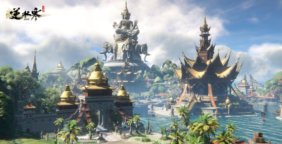威严肃穆的巨大佛像下,是金碧辉煌的商会建筑、热闹非凡的街道广场、悠扬悦耳的曲韵歌声,用独特的景象与声音向您诉说着独属于【南陀岛】的惬意与欢乐。