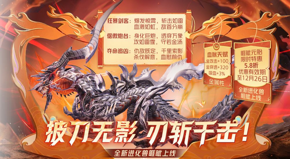 比如2024年11月现世的首只可化身炮台的进化宠睚眦,让进化宠可通过器械形态参与战斗: