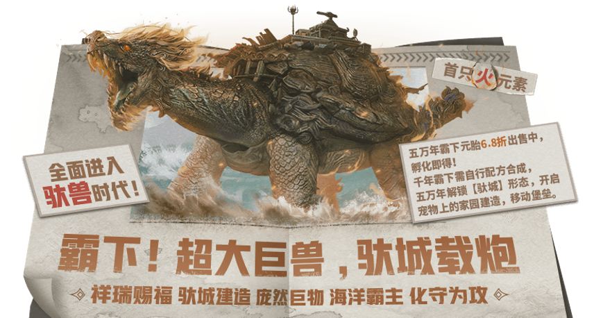 比如2024年1月现世的首只驮城进化宠霸下,除战斗以外,还为进化宠附加了“移动的家园”功能,实现画了3年的巨兽建造“大饼”: