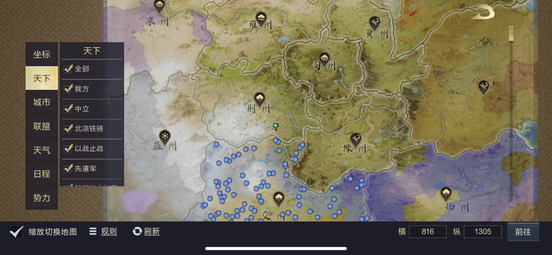 晚上9点,《君临》正常执行,攻打进入资源州荆州必经城市《潭中》。