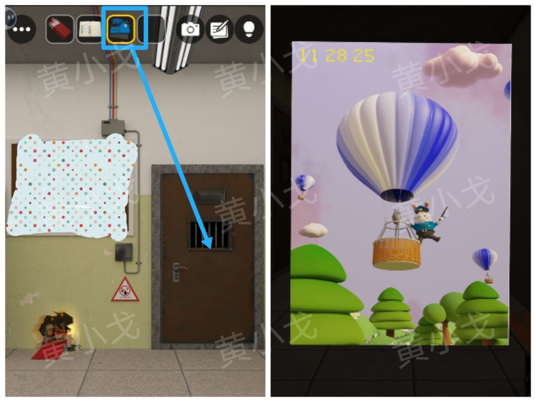 30.点击铁门上的密码锁,根据横幅和【海报】上的线索,输入密码:12825