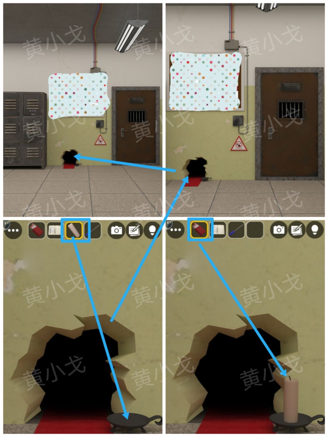 12.点击老鼠洞,把【蜡烛】放到烛台上,用【火柴】点燃