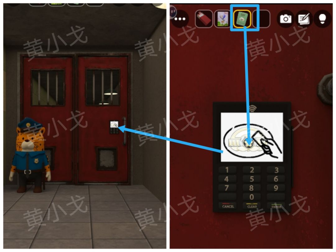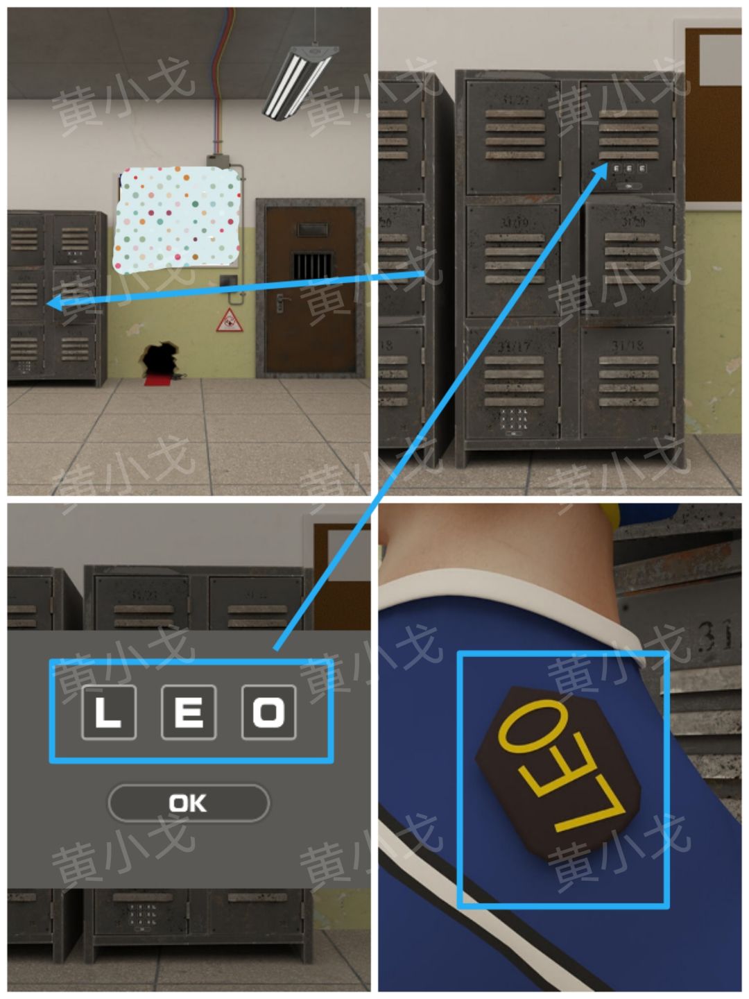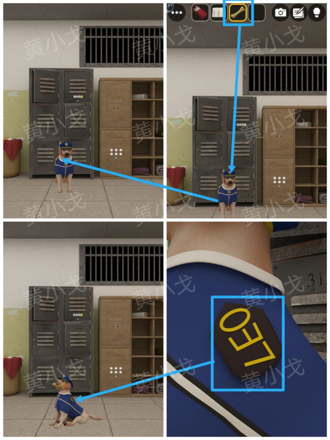 10.点击右上角的储物柜上的密码锁,根据[洗衣房]场景警犬身上的编号线索,输入密码:LEO