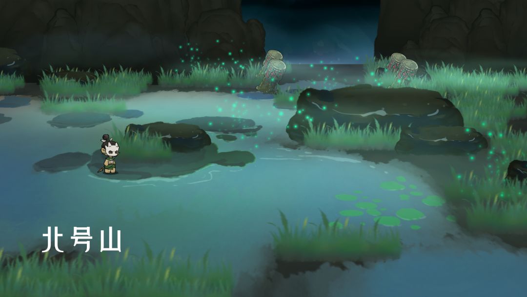 北号山位于北山与东山的交界,北号山以北是无尽的枯树与沼泽,透过沼泽上弥漫的雾气,仿佛能看到里面不断跳动的黑影,这里也传说栖息着并成为狡恶之兽的「鬿雀」与「獦狙」。北号山东临大海,陆地面积狭小,这里生活着东夷部落的舟阳氏,曾经在伏羲的传授下掌握了刳木剡舟的技法。