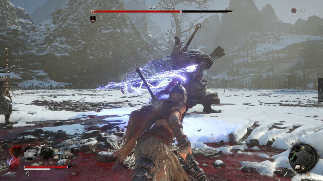 这名敌人远程伤害很高,近战时他会使用火枪砸击我们,可以使用格挡规避。状态不好就快速退出小路卡墙角补状态,击败获得【烁光红羽】【赤汞精华*1】。后方箱子拾取【马牙双刀*1】,旁边拾取【萌发的赤汞*1】。