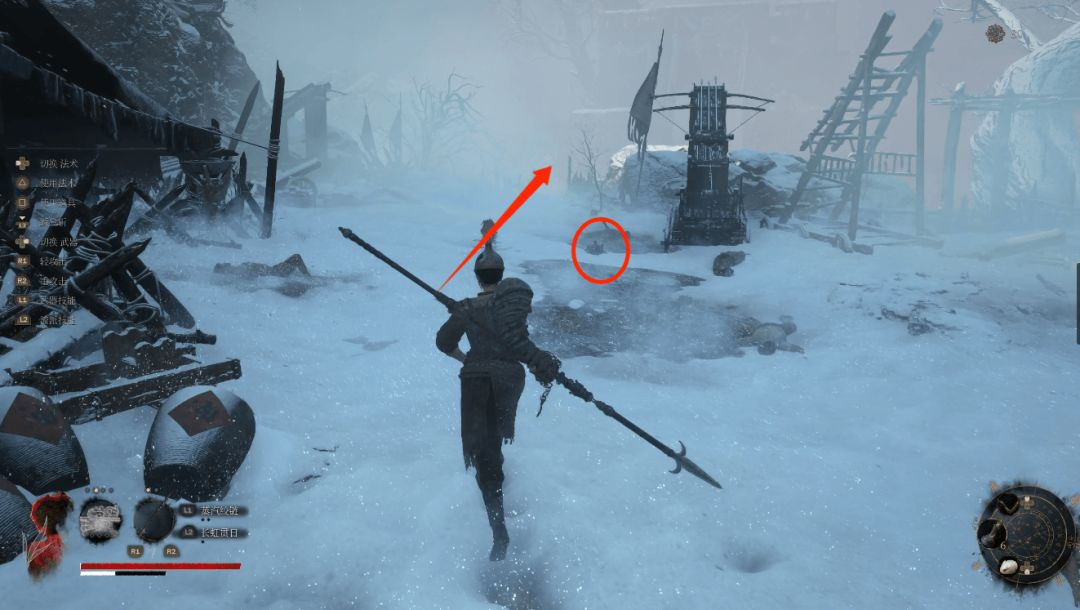 前方我们就到达映雪门,接下来我们就来看下守门BOSS大明监军·刘承恩的打法小技巧。刘承恩属于人形敌人,我们可以用武器打背刺破刹,这里我们可以携带武器神火长枪,神火长枪的武器技能可以使敌人转身,再点出长枪线消耗须羽加快蓄力速度。我们给武器火焰附魔后使用一个羽枝回满须羽,随后进入BOSS房,上来BOSS会先使用白给三连砍跳到我们身边跳劈我们三次,前两次速度较快第三段稍慢,开局如果没有使用羽枝闪避三次也能积攒不少须羽。等刘承恩一次技能连招出招完我们使用神火长枪技能后直接衔接蓄力重击破刹,BOSS倒地我们跟上去打须羽,如此反复几次BOSS血量就不多了。注意刘承恩二阶段会呼唤风暴,我们看到他抬手周围开始掀起风暴就先拉开距离,这个技能刘承恩不会移动我们可以趁机恢复状态。
