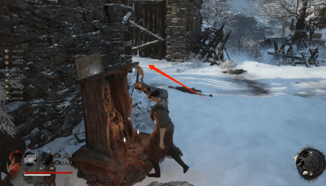 羽渡到云顶外城的神龛后我们走上期解锁的木门捷径上台阶。