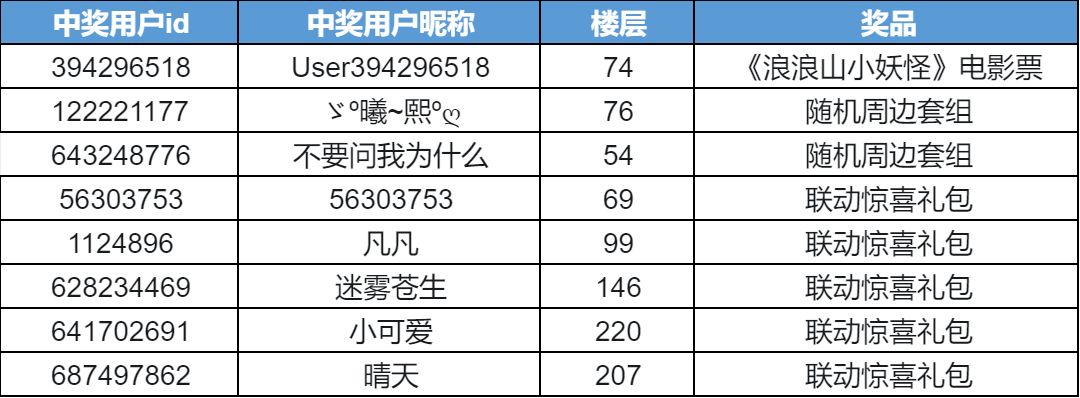 《赛尔号》庆祝《浪浪山小妖怪》票房突破 10 亿! 活动开奖啦!感谢大家的热情参与!!让我们恭喜以下获奖的赛尔们!(鼓掌!~(‾ ⌣‾~)
