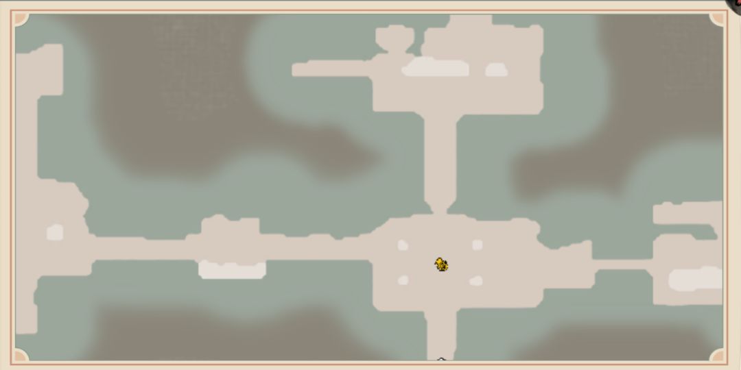打完之后我们继续向上走到尽头,有一处破裂的墙壁,我们打碎进入,里面有一个宝箱。拿完宝箱我们回到路口,继续向右走,地图如下: