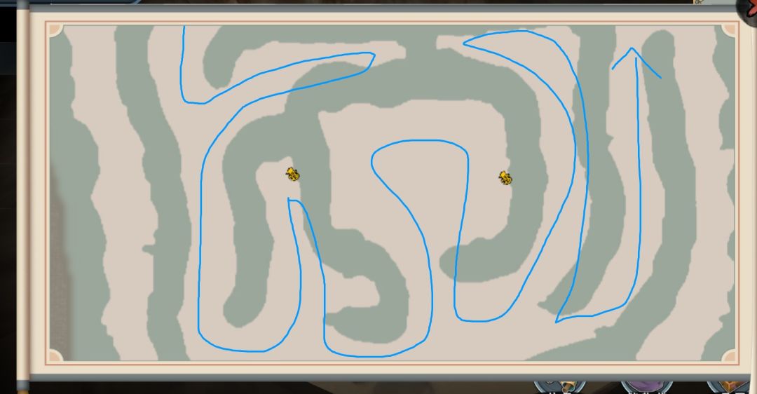 我们在左下角,先沿着红色路线探索,然后沿着蓝色路线探索。