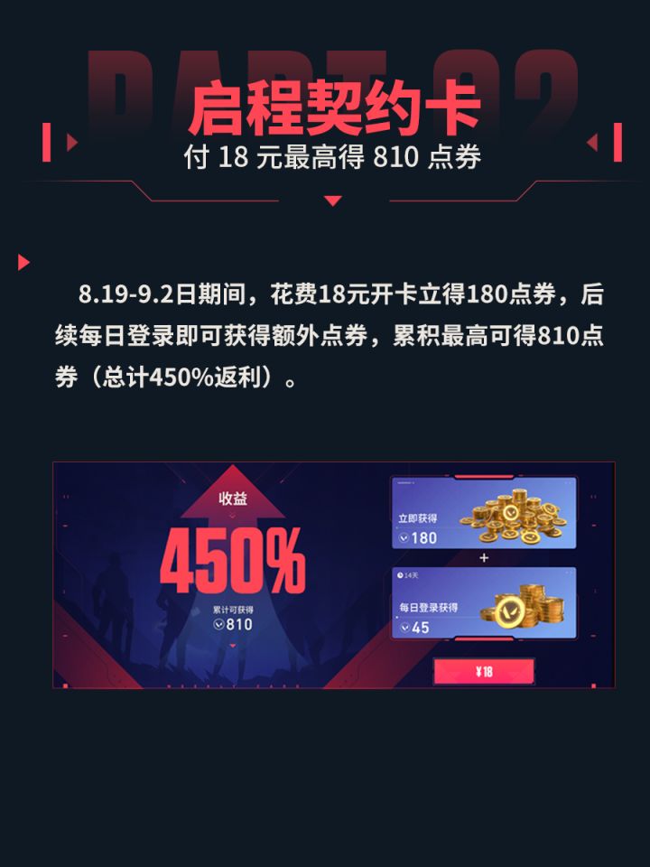 仅需18元解锁契约卡,每日登录最高得810点券~