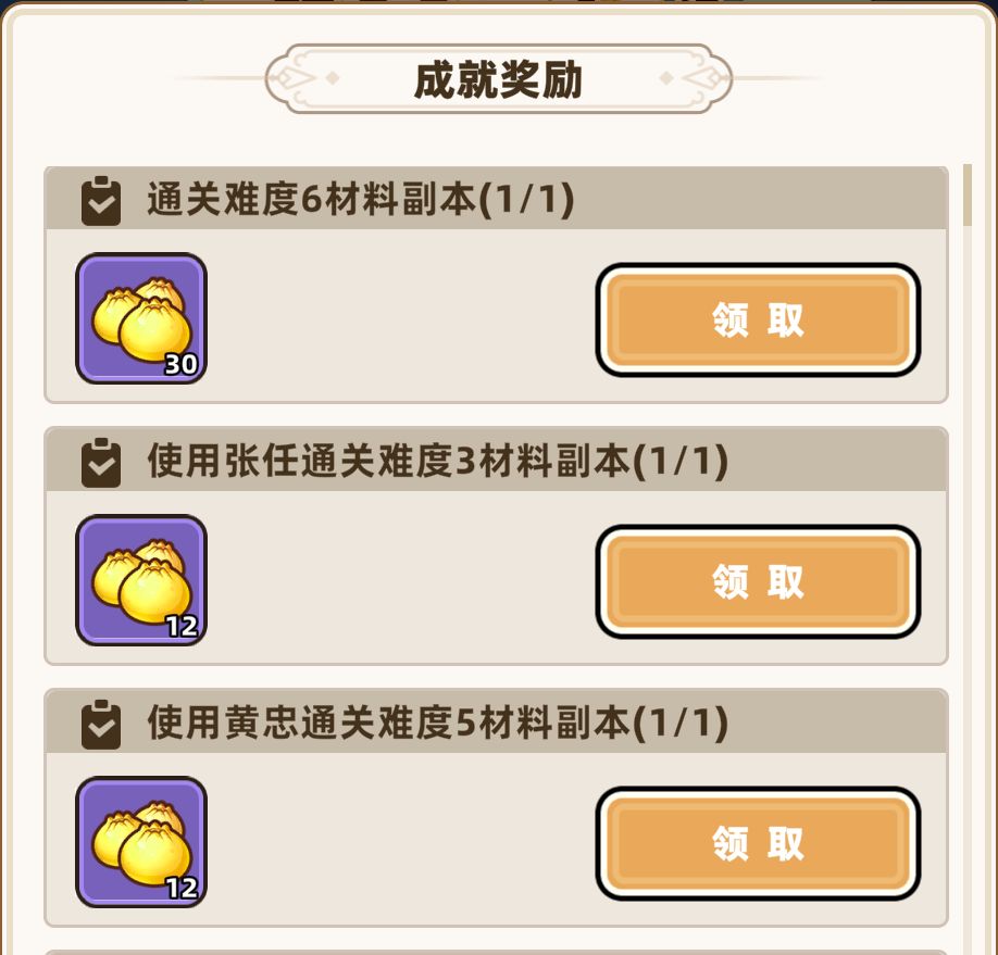 2、值得注意的是成就任务中会有使用某武将通过难度x的任务,只要使用武将通过难度最高的任务,即可获得该武将系列任务所有奖励(示例:使用黄忠通过难度7经验副本,即可获得黄忠通过难度1-7的所有成就奖励)