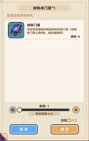 1、每日赠送的经验副本门票和材料副本门票都有上限,即2张。如果有其他方式获得的门票,主公不用担心,会优先扣除每日赠送的门票。