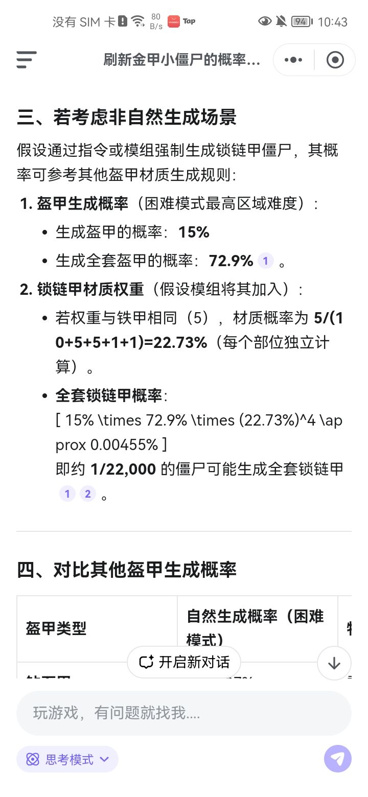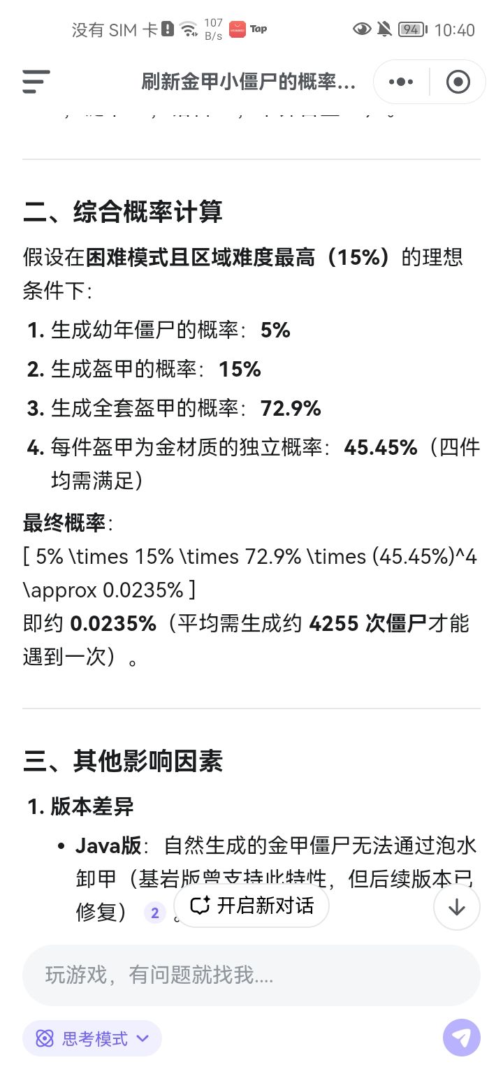 小僵尸是自然生成的,这个大僵尸是我放生物蛋放出来的,查了一下刷新金甲小僵尸的概率0.0235%,这合理吗?