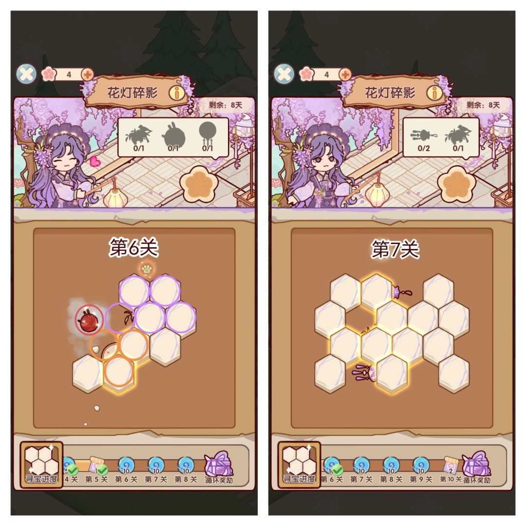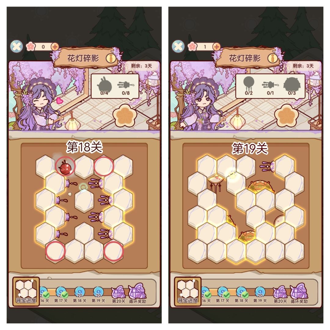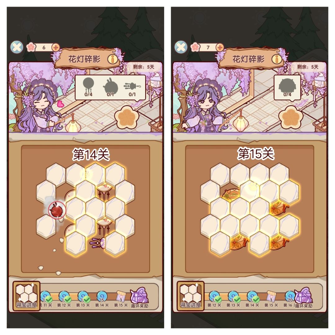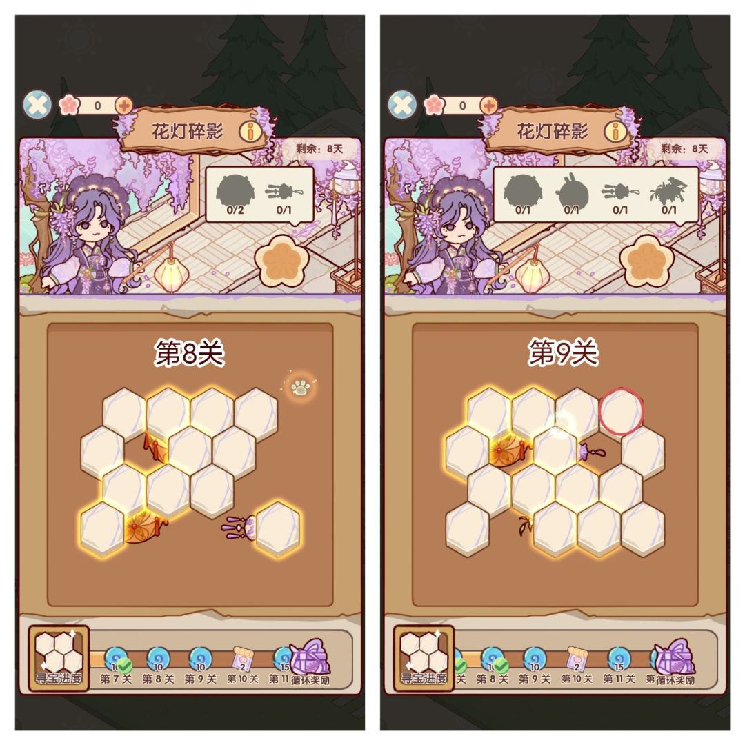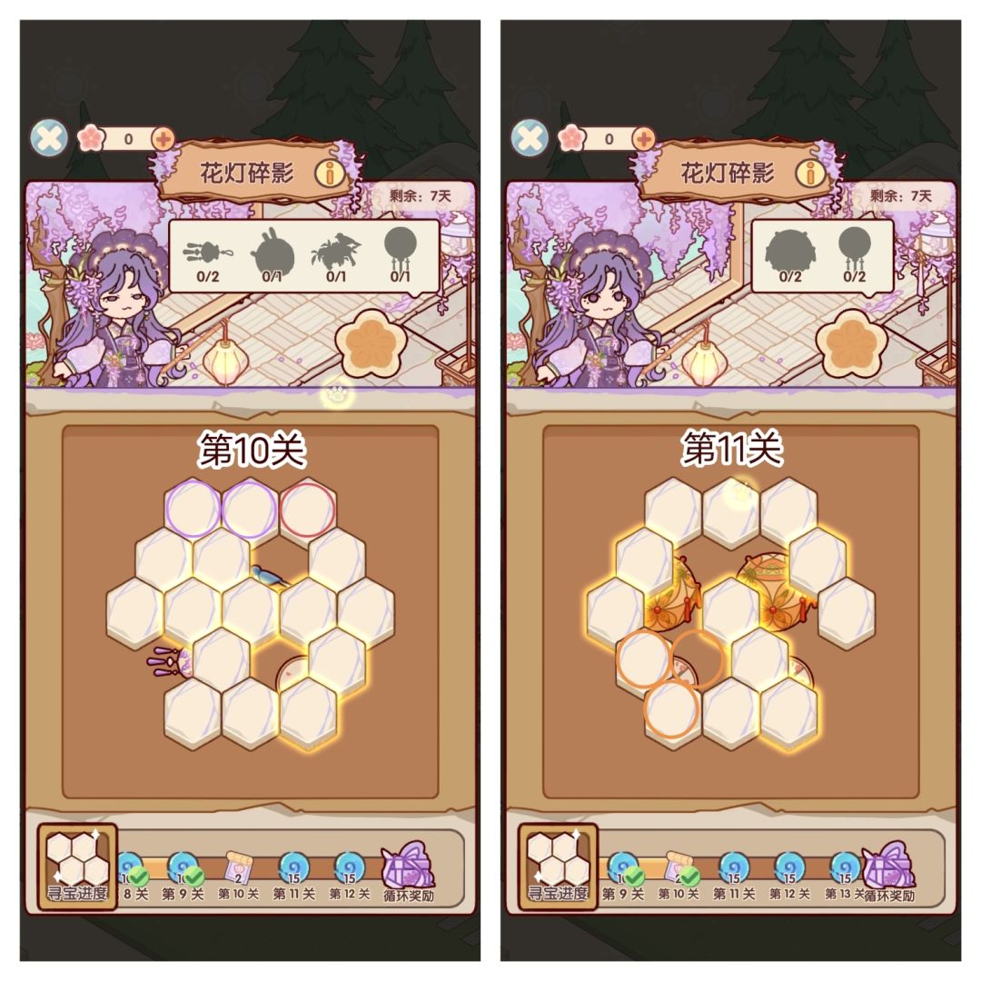 🌸参与活动「花灯碎影」可获得花影设计稿*11、蜗壳币*200、限时家具「灵犀巧果盒」、「灵羽香挂」等奖励。