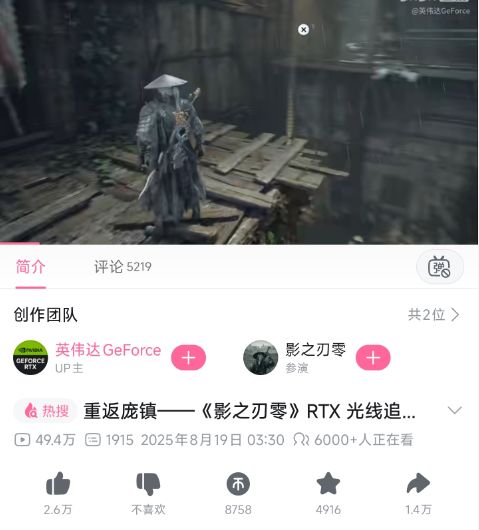 2025年8月19日凌晨3:30分,B站独家首发国产单机游戏《影之刃零》全新实机演示。