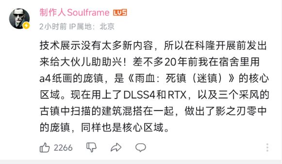 视频发出后,制作人也同步回应了这次视频并没有展示更多新内容,主要展示的是《雨血:死镇》中的核心区域。