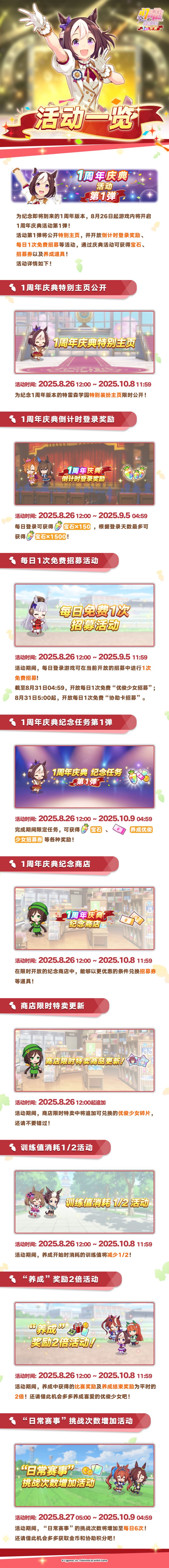 为纪念1周年版本,游戏内将于8月26日起陆续举办"1周年庆典"系列活动!