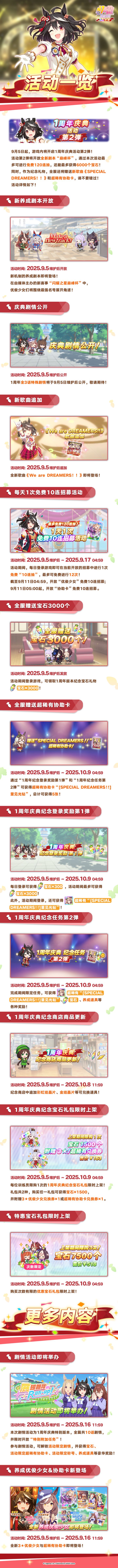 本次活动中,最多可进行“免费120连抽”,通过登录活动和宝石礼物还可获得最多“宝石×9750”,更有限时庆典活动等待训练员的参与!