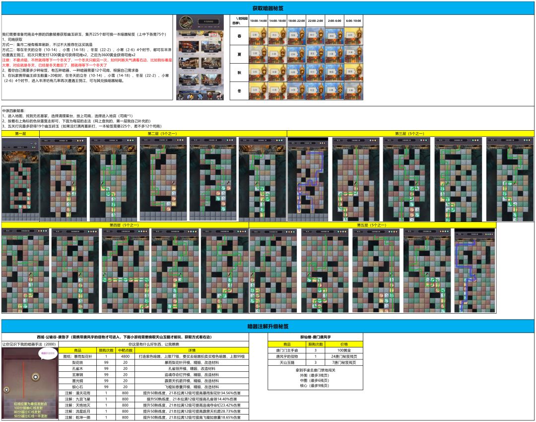 【暗器攻略】属性(待完善)&升级消耗&推荐&暗器秘笈(司南)
