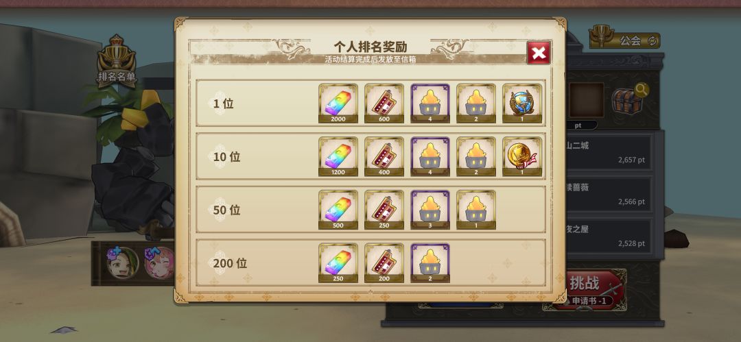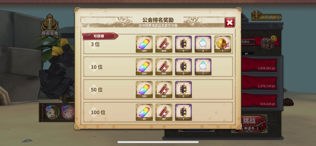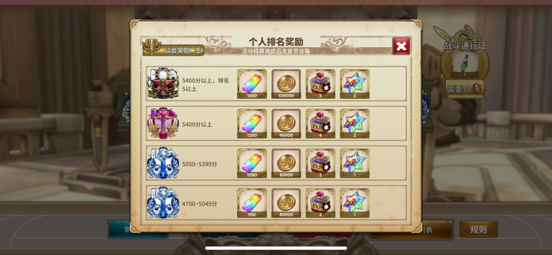 2.竞技场和排位奖励,两项奖励都包含个人分和工会分,其中竞技场是一个月左右更新,5400分就不掉分了。而排位赛每周更新!