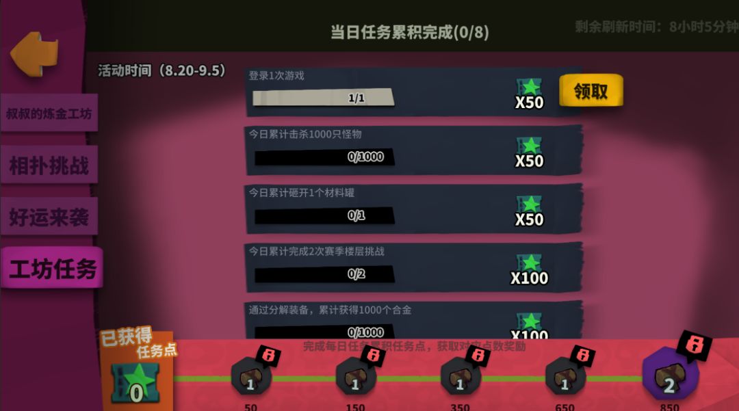- 只要集齐炼金材料,本轮剩余还未开启的材料罐将会同时打开,并且附赠获得本轮的最终奖励。