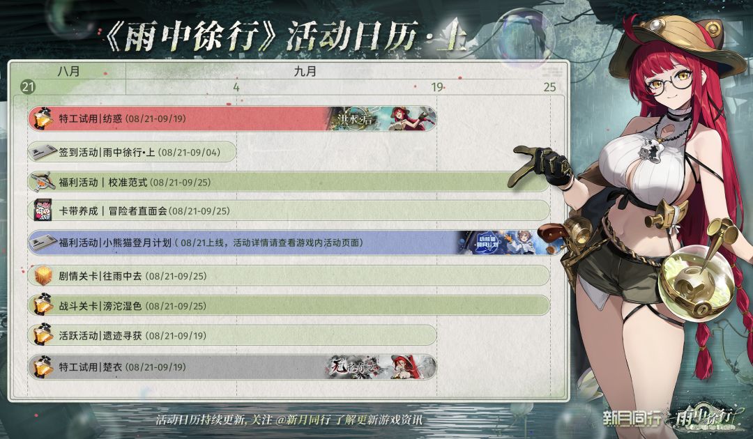 组长,以下是超级美少女秘书千秋帮你整理好的「雨中徐行」活动日历·上篇!